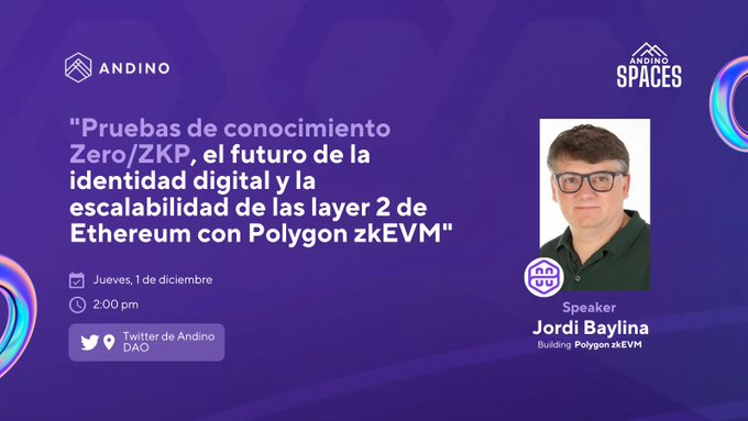 En este space conocerás sobre el futuro de la identidad digital y la escalabilidad de las L2 junto a Jordi Baylina, un experto del equipo de Polygon zkEVM.