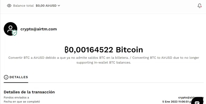 La plataforma de intercambio de activos digitales entre personas AirTM comunicó a sus usuarios que ya no permite operaciones con criptomonedas. De este modo, las personas que utilizan la plataforma ya no podrán hacer depósitos y retiros directos. Tampoco comprar o vender Bitcoin ni otras criptomonedas desde su web o aplicación móvil.