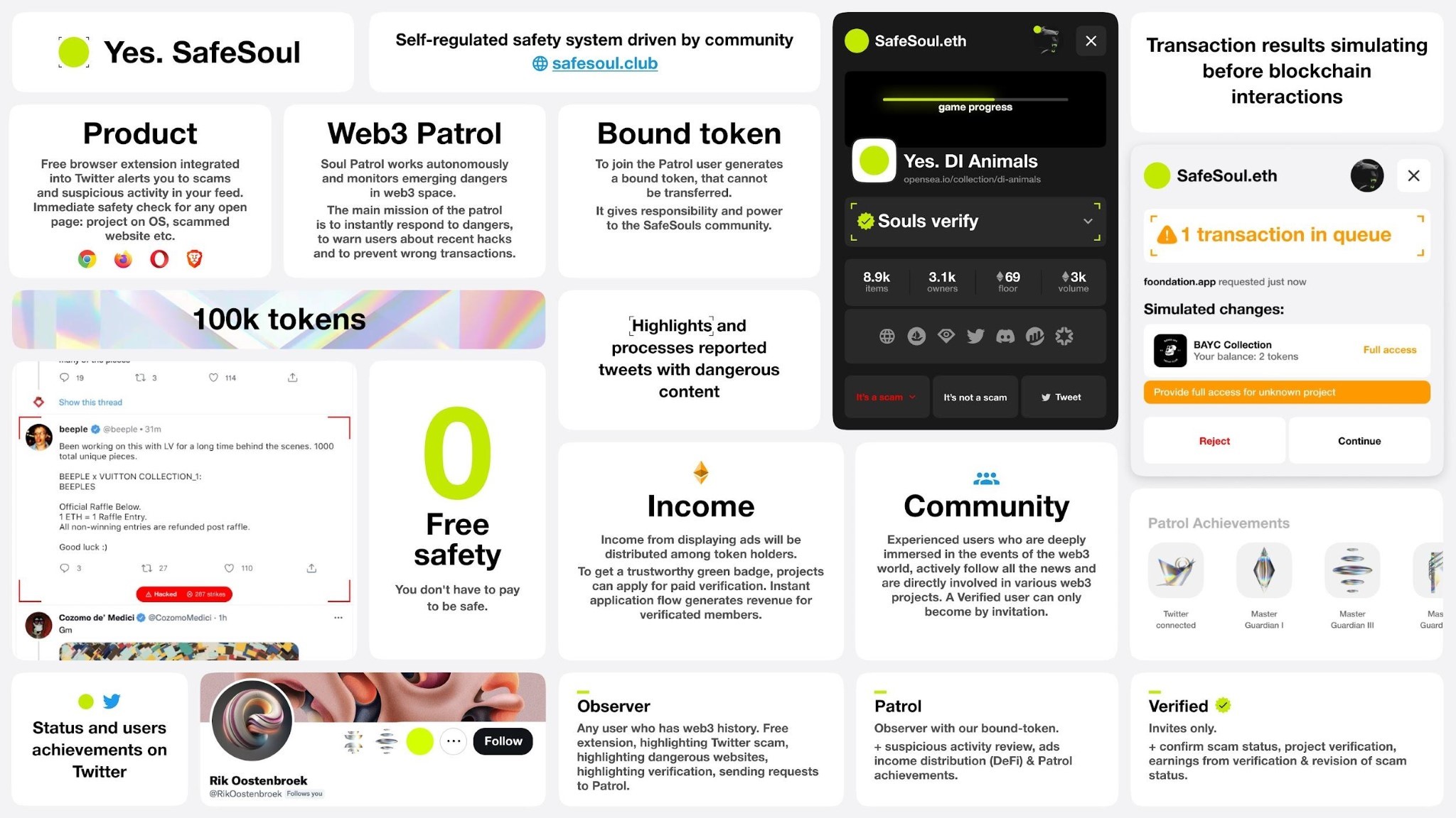 DA Team: Como fundador de Safesoul, estamos orgullosos de ofrecer una innovadora extensión de navegador que ayuda a proteger a los usuarios de estafas y otras actividades sospechosas. Nuestra extensión de navegador tiene una capacidad única para simular los resultados de las transacciones antes de que se produzcan transacciones reales de blockchain, lo que ayuda a los usuarios a evitar costosas pérdidas en caso de estafa. Además, el sistema de votación descentralizado que hemos implementado está autorregulado y dirigido por la comunidad, lo que garantiza una experiencia en línea segura para todos los usuarios.