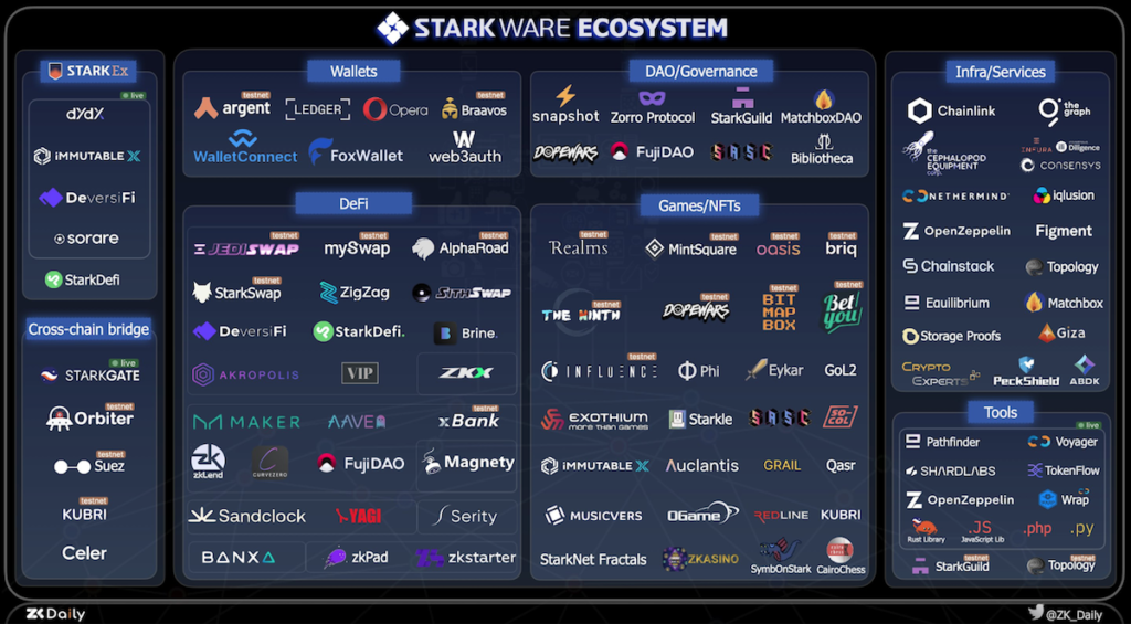 Dicho esto, el ecosistema tiene un transpilador llamado Warp que convierte el código Solidity en código Cairo y que acaba de usarse para transferir una bifurcación de Uniswap a StarkNet .
