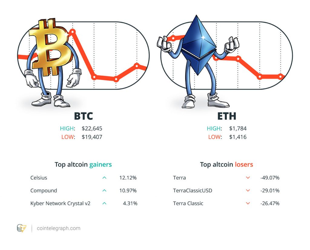 Bitcoin superó por completo los $22 000 esta semana, pero posteriormente volvió a caer por debajo de la marca de los $20 000 en los días siguientes, según el índice de precios BTC de Cointelegraph.