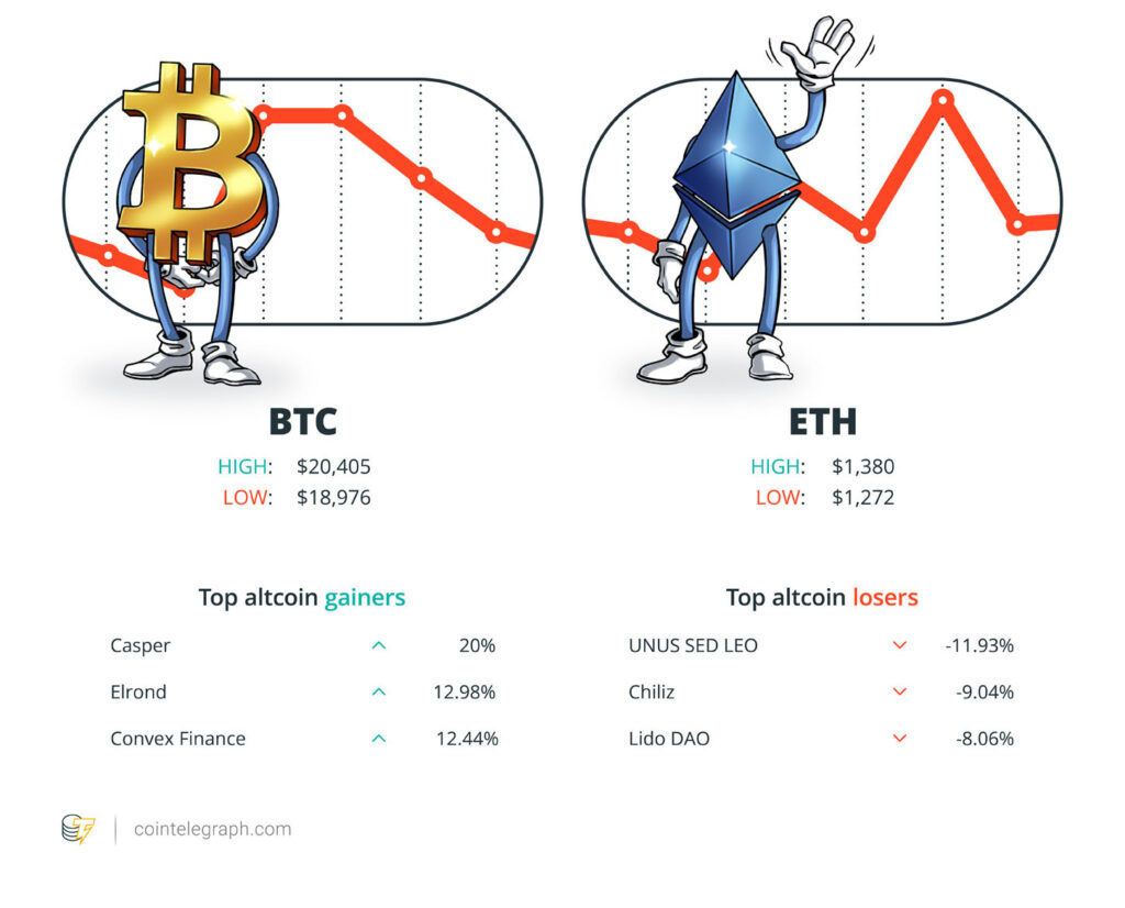 Bitcoin registró otra semana de acción de precios en gran medida limitada por el rango, cotizando entre $ 19,000 y $ 20,500 en su mayor parte, según el índice de precios BTC de Cointelegraph.
