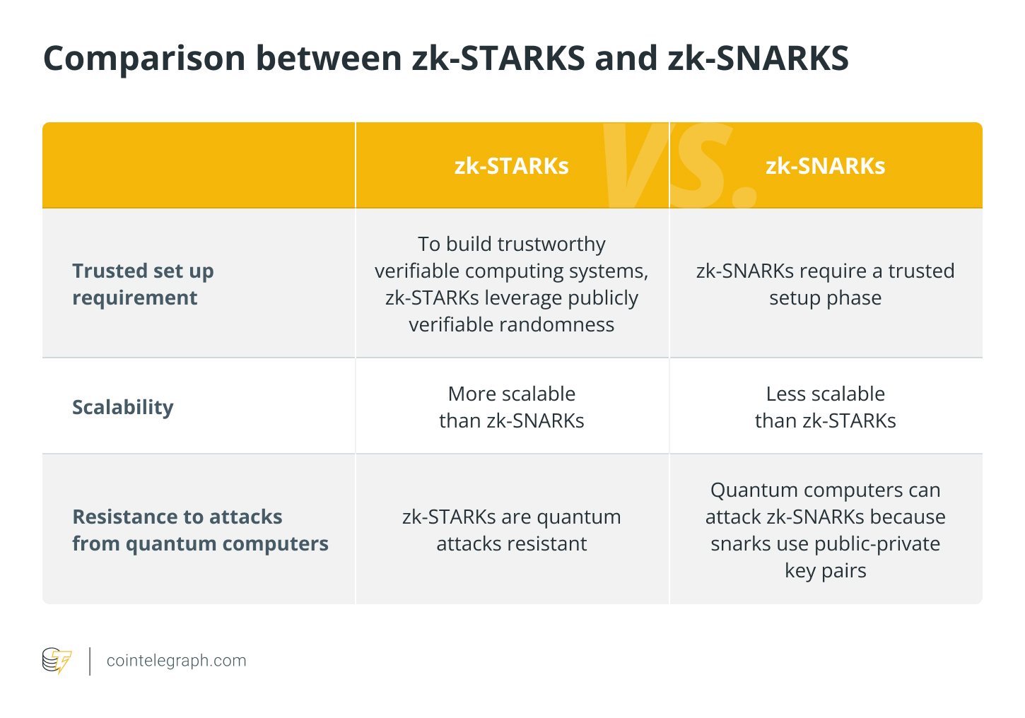 STARKs es un sistema de resistencia cuántica basado en funciones hash utilizadas por Ethereum, no en curvas elípticas utilizadas por Bitcoin. Es importante destacar que los sistemas STARK se consideran más avanzados que sus predecesores, zk-SNARK, y pueden resistir los ataques de las computadoras cuánticas.