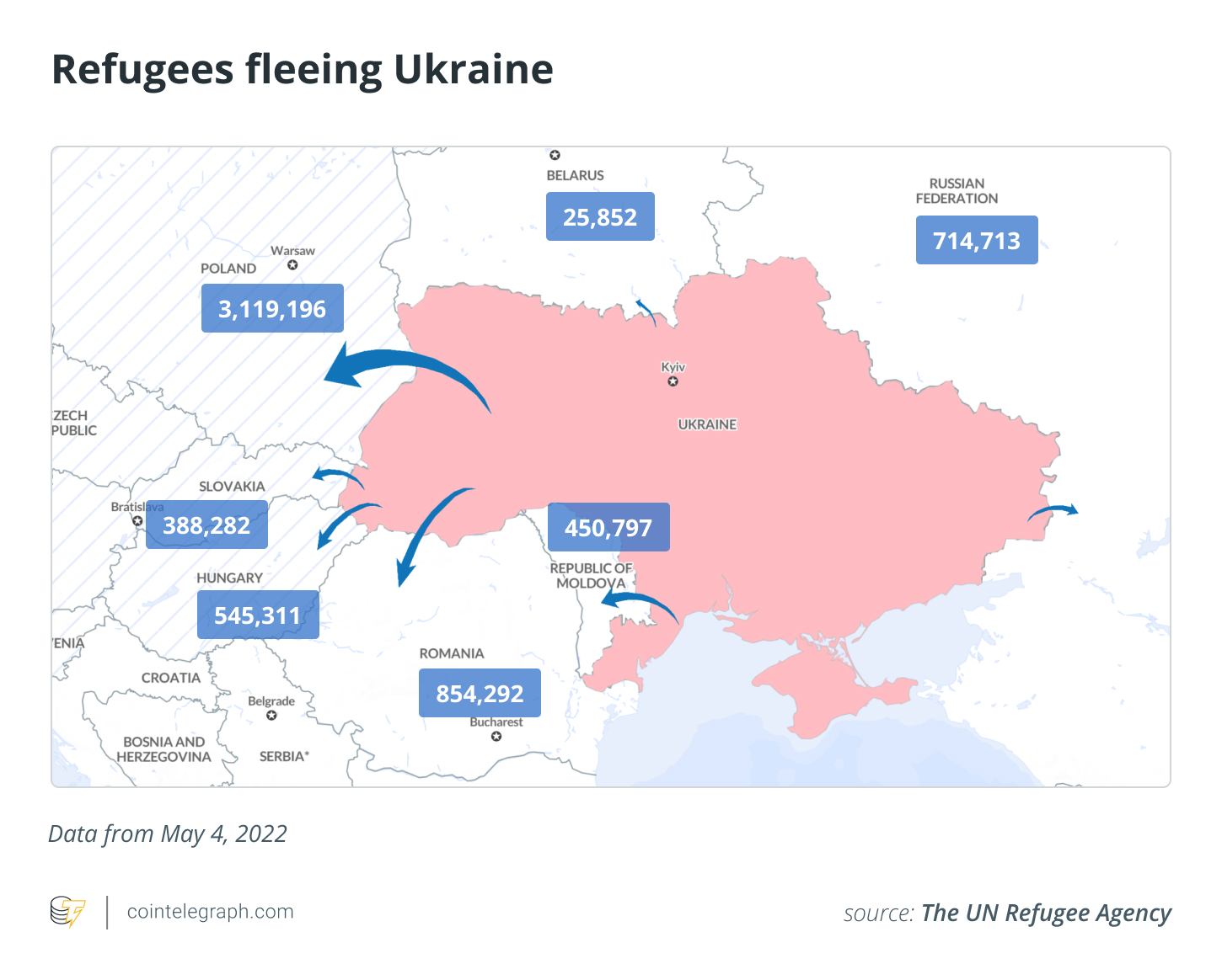 Para las personas, las criptomonedas pueden proporcionar un método de escape de las crisis que puede salvarles la vida. Un programador informático de Lviv dijo que había escapado de la lucha gracias a Bitcoin. Con cajeros automáticos fuertemente restringidos y colas masivas en los bancos, pudo transferir todos sus ahorros y cruzar la frontera a Polonia, donde ahora se ofrece como voluntario para ayudar a Ucrania a ganar la guerra digital al contrarrestar la propaganda en línea y alentar a los rusos a hablar.