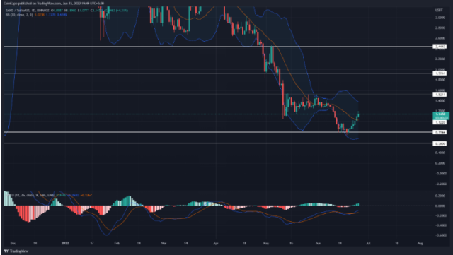 Los toros del viernes por la noche superaron el límite horizontal de 10 días, impulsando el precio de la criptomoneda SAND muy por encima del nivel crítico de cobertura bajista de $0,90.